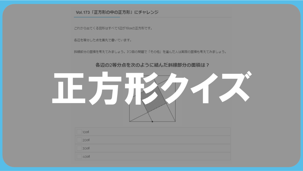 算数クイズに挑戦!vol.173「正方形の中の正方形」にチャレンジ!