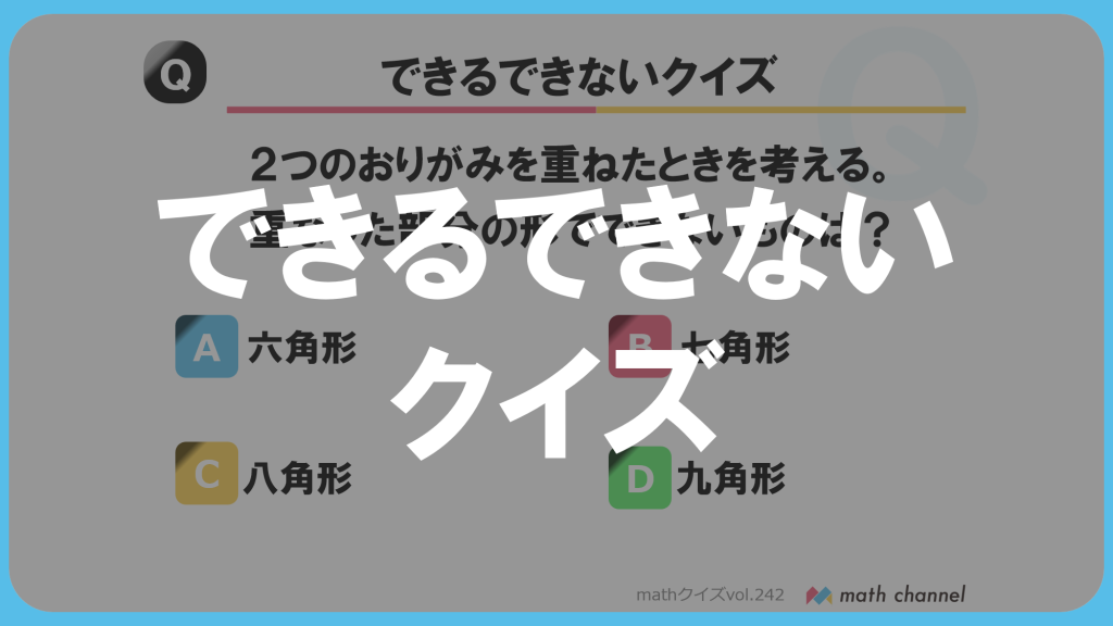 大人も楽しい、算数クイズ! math channelがお届けする「算数クイズ」は毎週水曜日公開!さっそくチャレンジしましょう! Vol.242 「できるできないクイズ」 math channelは様々な算数コンテンツをお届け! YouTube、Twitter、LINEなどで様々な情報をお届...