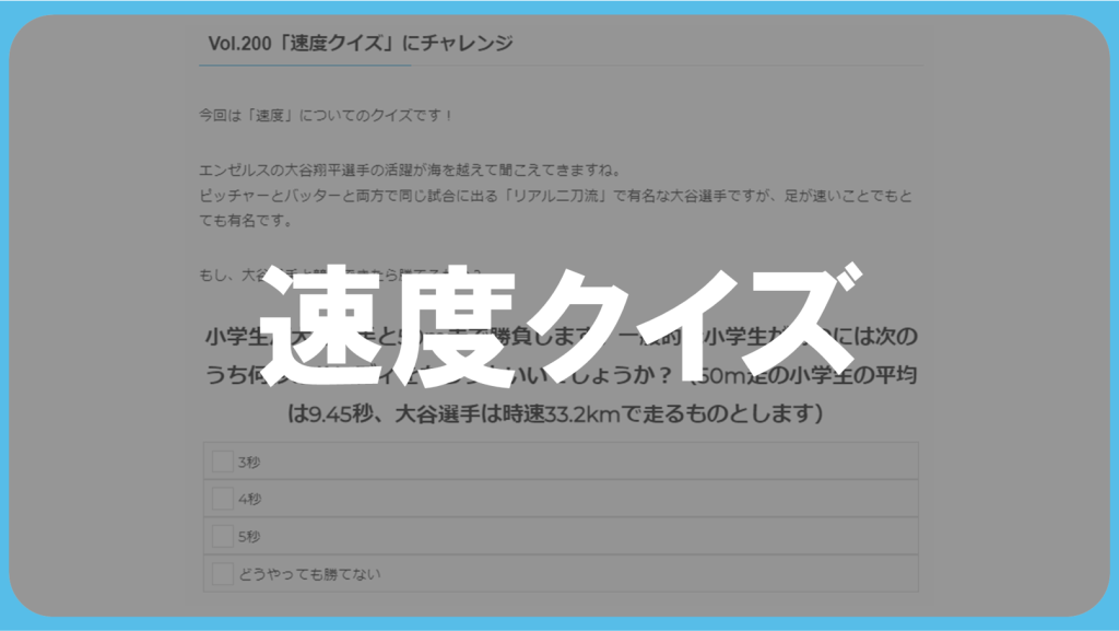 算数クイズに挑戦!vol.200「速度クイズ」にチャレンジ!