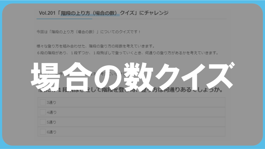 算数クイズに挑戦!vol.201「階段の上り方(場合の数)クイズ」にチャレンジ!