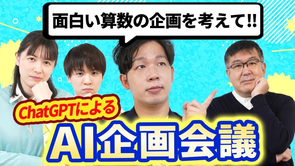 今回は、企画会議もAIに頼ってみようということで、ChatGPTに「面白い算数の企画を考えて」と投げかけました。 果たして、AIが考えてくれた企画は、企画会議を通って採用されるのでしょうか?結果やいかに。 -