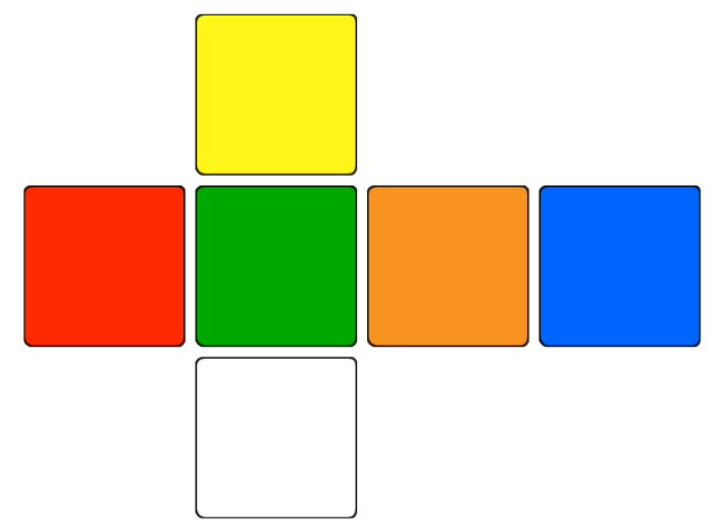 この特徴を活かして、通常ルービックキューブを回転させるときは白面を上に緑面を手前にして持つことが多いです。