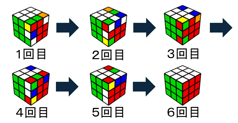 正しく繰り返すと6回で元の完成状態に戻ります。