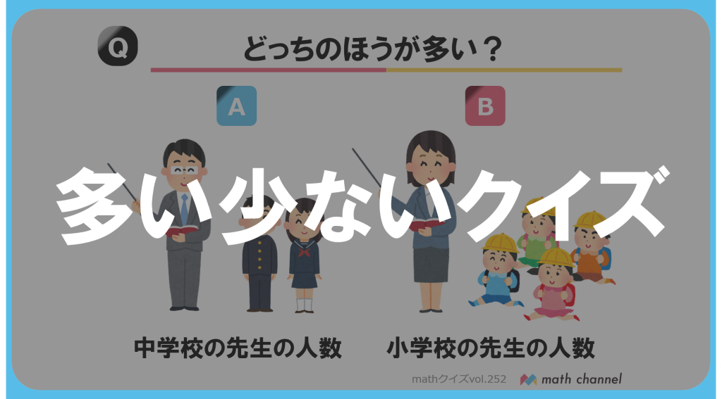 大人も楽しい、算数クイズ! math channelがお届けする「算数クイズ」は毎週水曜日公開!さっそくチャレンジしましょう! Vol.252「多い少ないクイズ」 math channelは様々な算数コンテンツをお届け! YouTube、Twitter、LINEなどで様々な情報をお届け中!... -