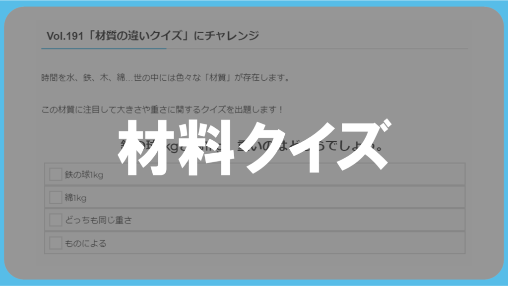 算数クイズに挑戦!vol.191「材質の違いクイズ」にチャレンジ!