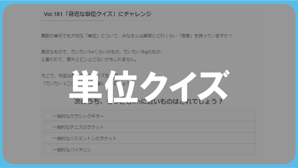 算数クイズに挑戦!vol.182「身近な単位クイズ」にチャレンジ!