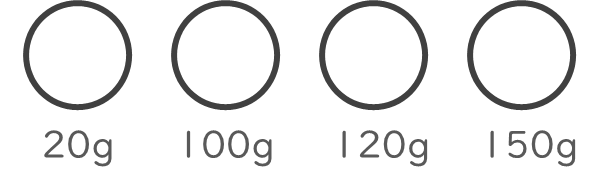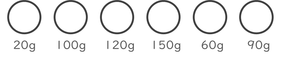 ずーさんこれまでに決まった重さは20g、100g、120g、150g、60g、90gだから……