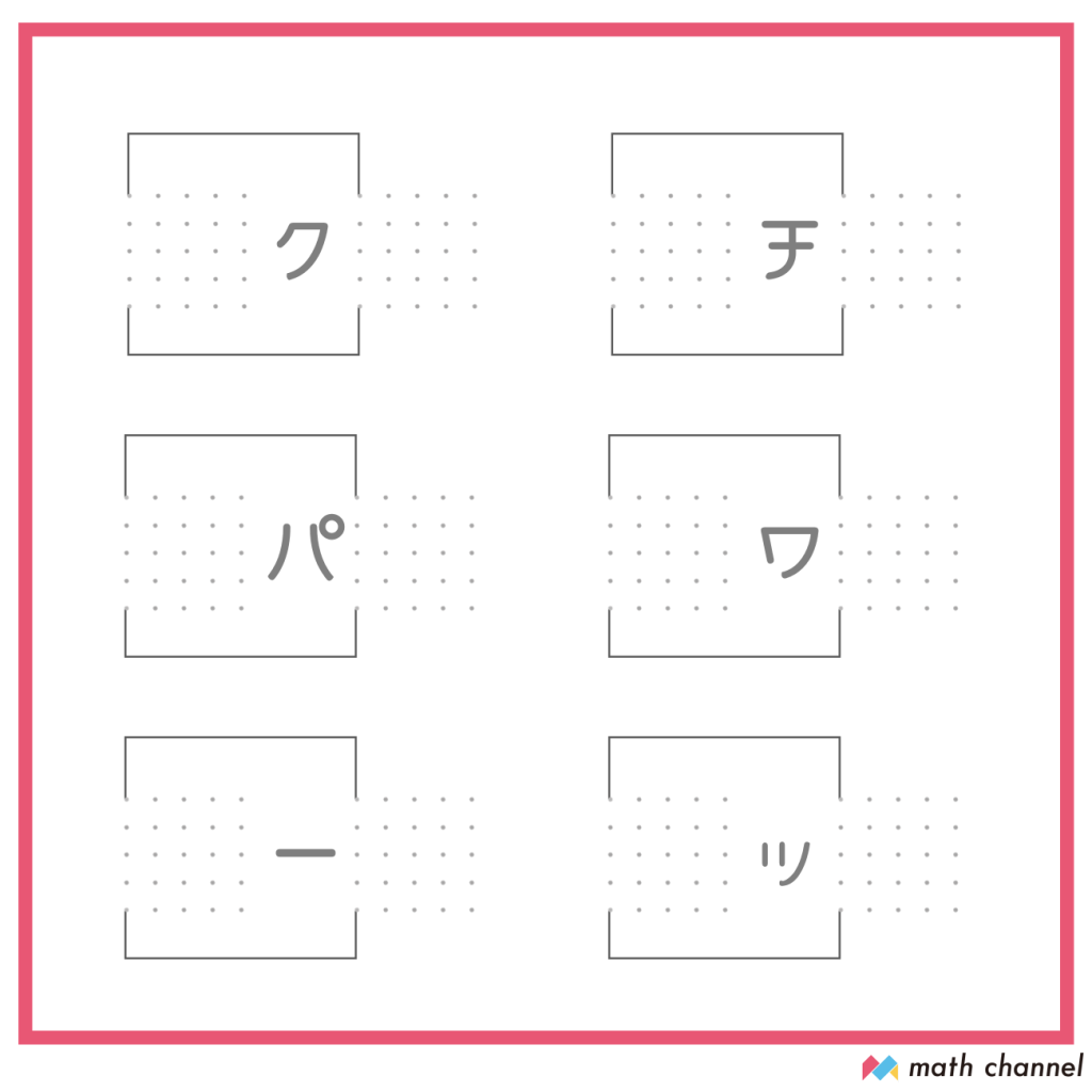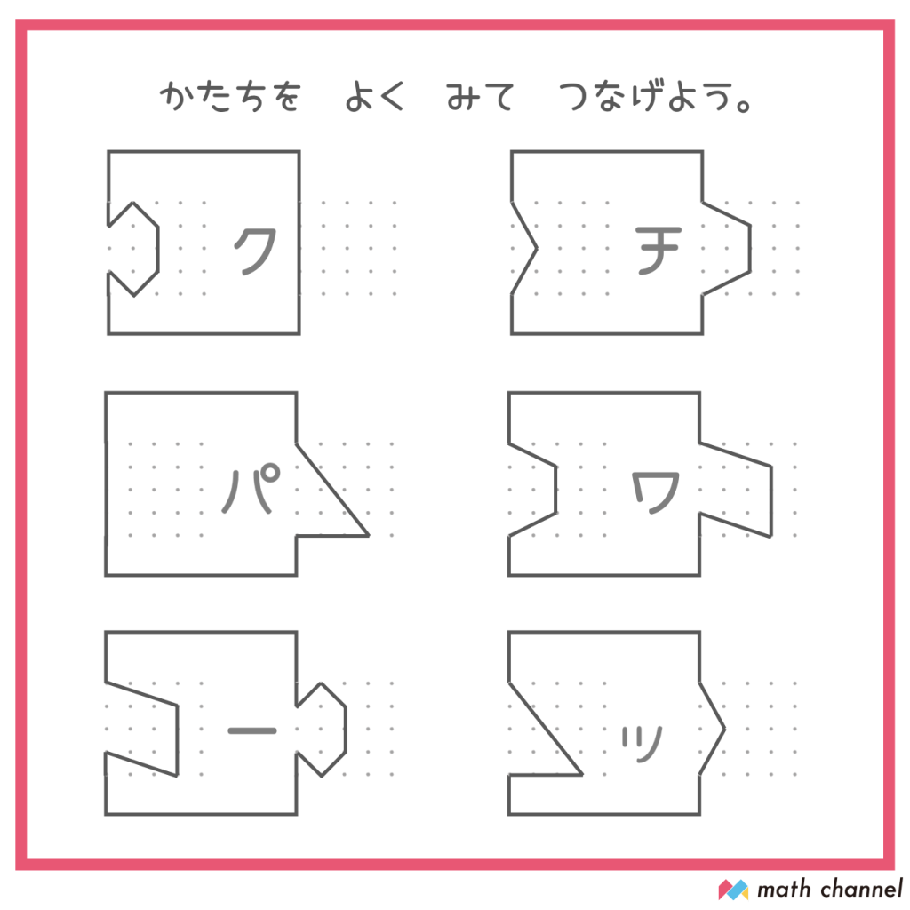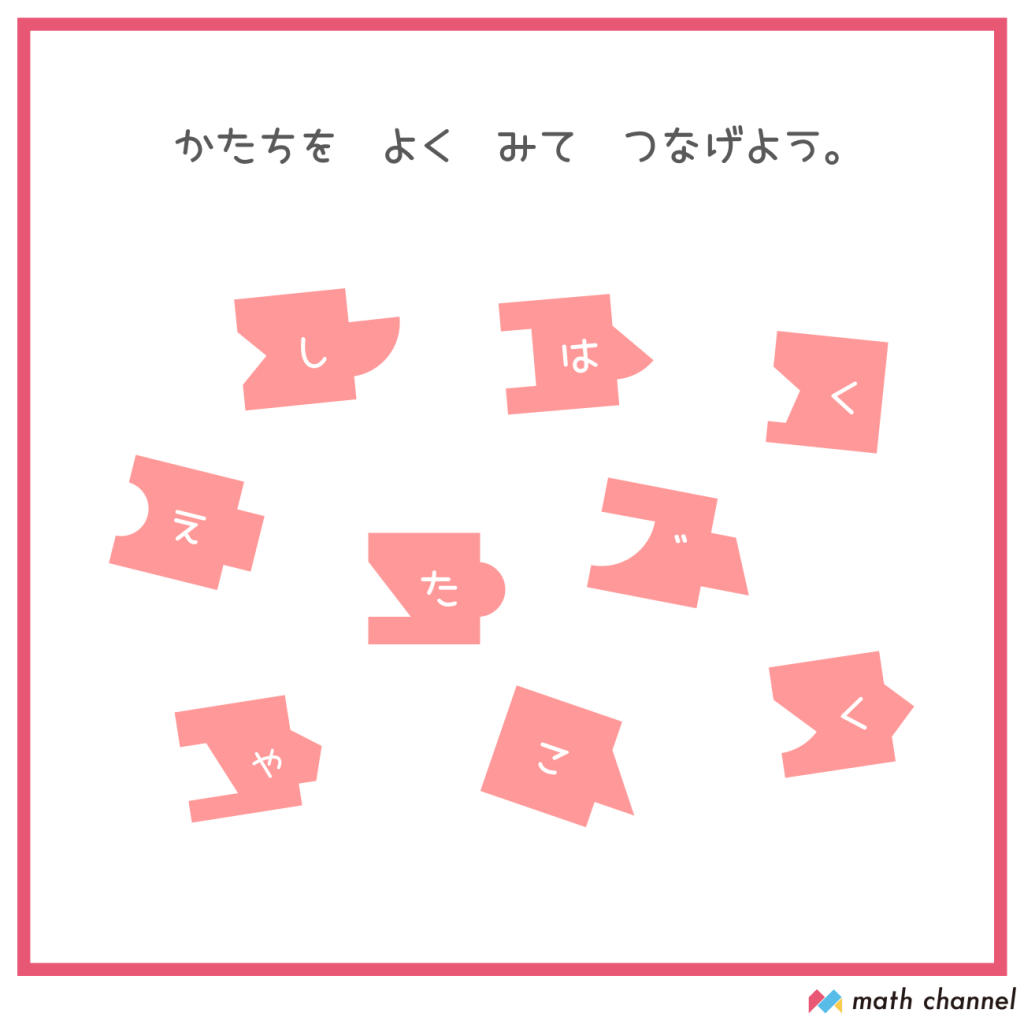 そして、3文字目~6文字目のピースにかいてみてほしいのはこんな図形!