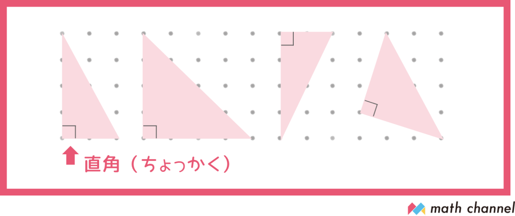 直角と呼ばれる90°の角をもつ三角形ですね。