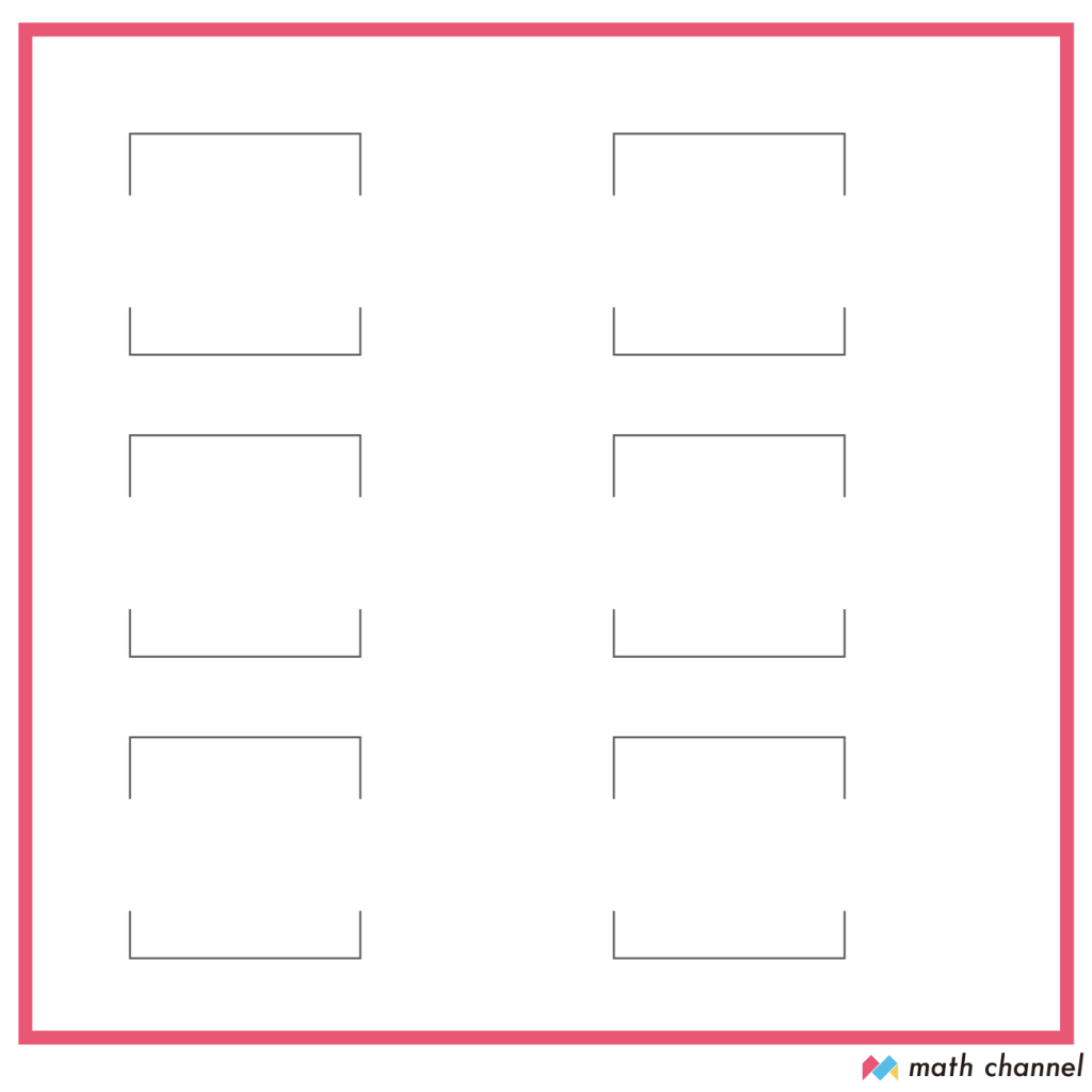 ノートに4マス×4マスの正方形を6つかきます。(または、4㎝×4㎝)