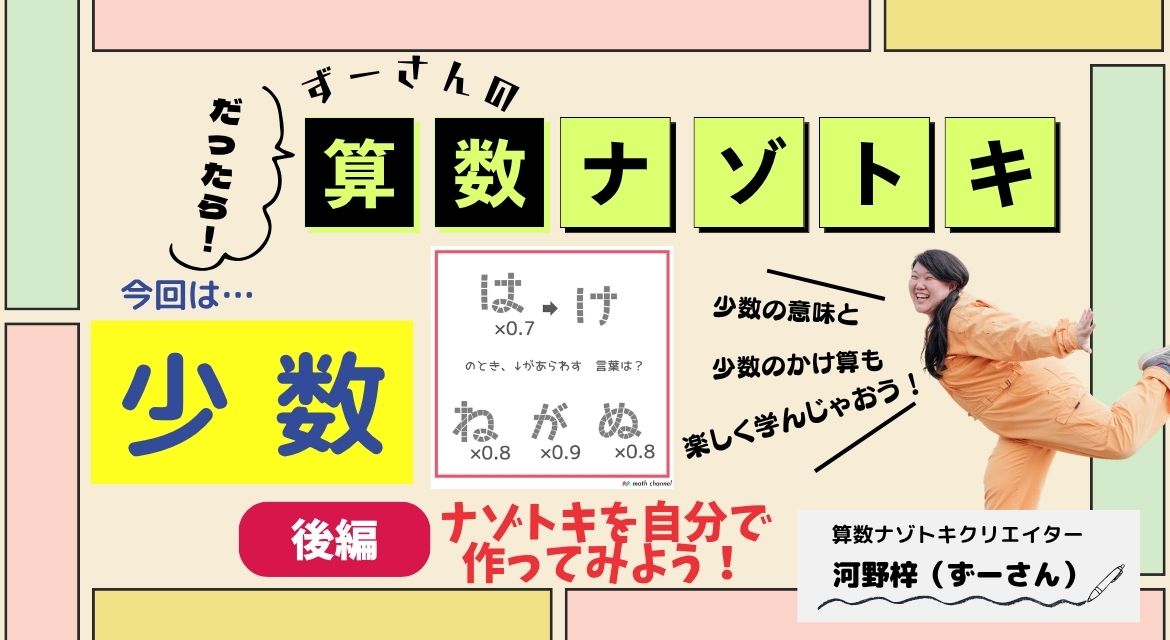 小学生のみんなに楽しく算数にふれてほしい算数ナゾトキ★クリエイターのずーさんが、