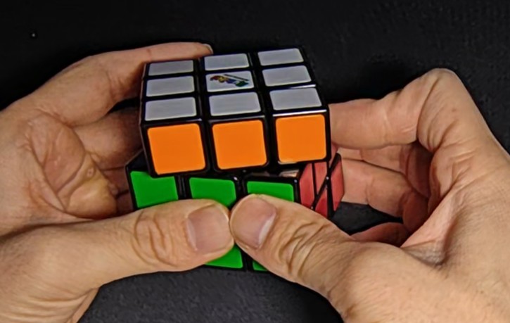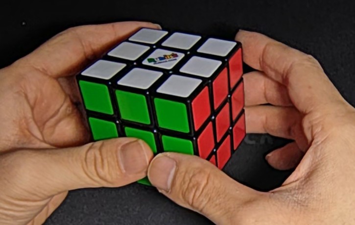 持ち方は左手の親指と薬指でルービックキューブを支え、右手はその横に沿えるように親指と薬指を置いておきます。