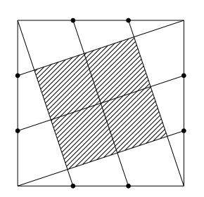 各辺の4等分点を次のように結んだ斜線部分の面積は?