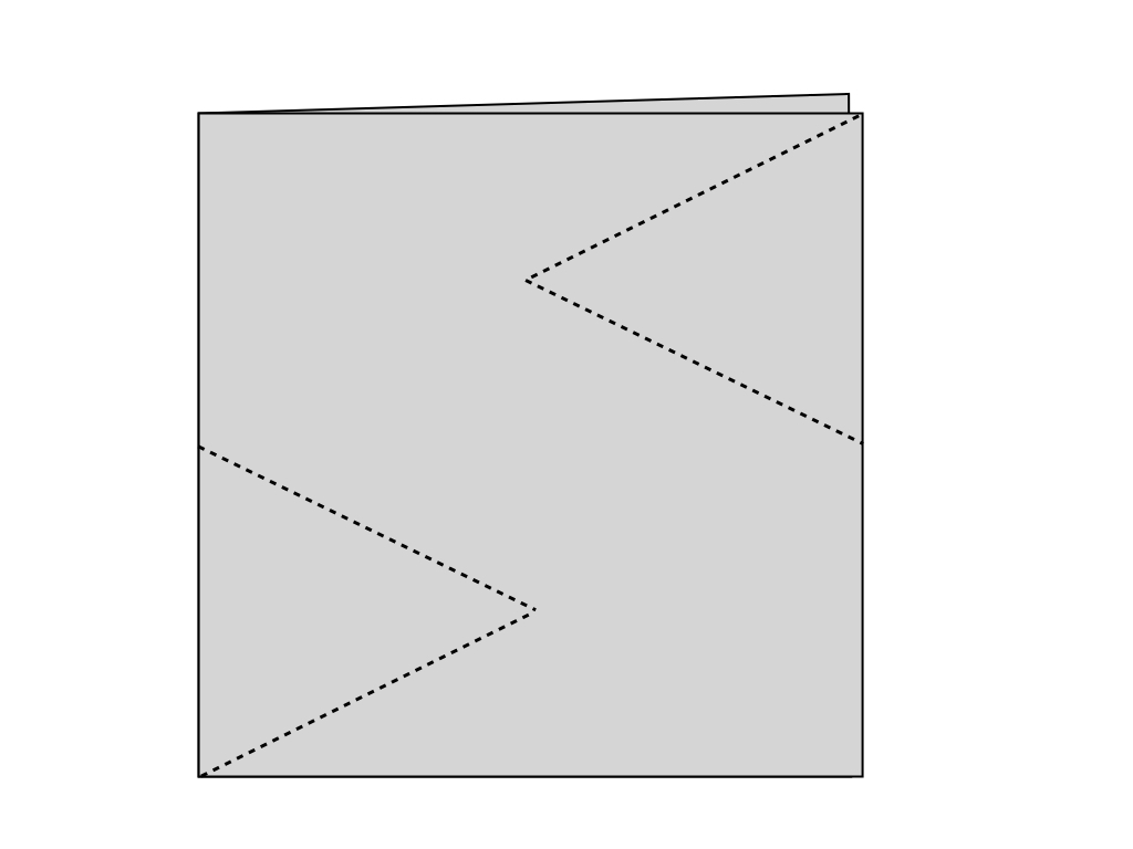 紙を何回か折ってからハサミを使って切り、紙を開くと、切り抜かれたような面白い形ができます。